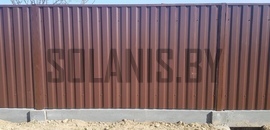 В данном виде забора Металлопрофиль монтируется между столбами, что делает забор более презентабельным и закончемным.
